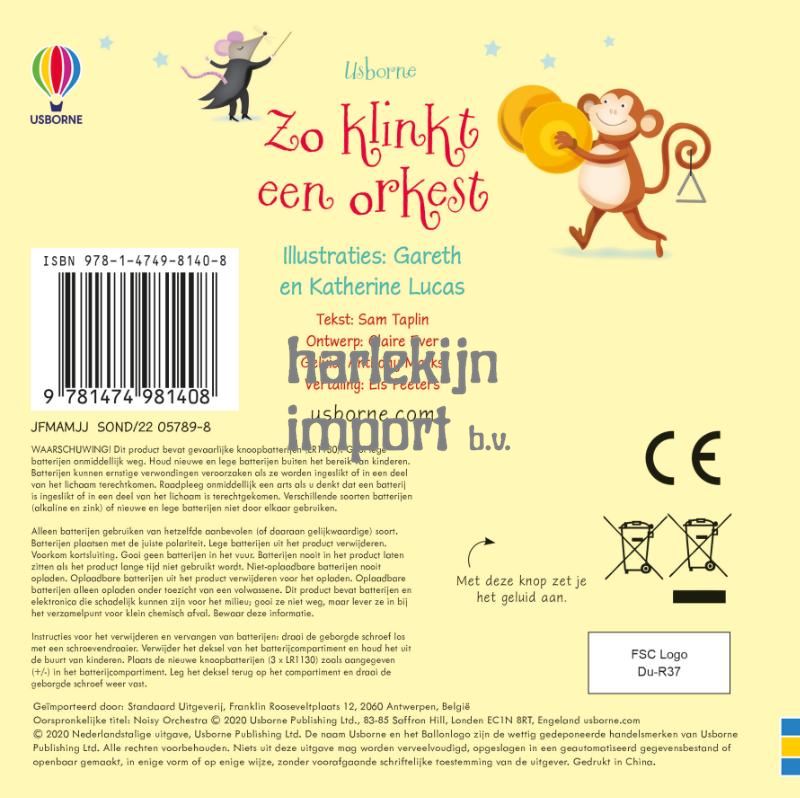 Druk op de knop en je hoort de muziek! In dit boek horen kinderen op elke spread een deel van het orkest; op de laatste pagina hoor je het hele orkest tegelijk. De fijne muziek is speciaal voor dit boek gecomponeerd. Een leuke kennismaking met instrumenten en orkesten