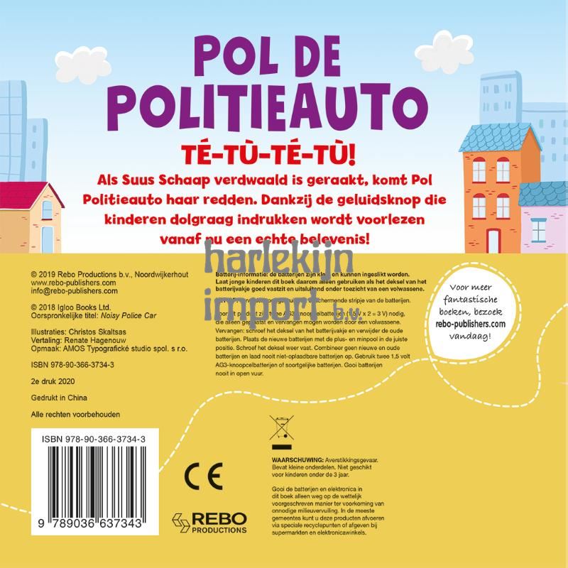 TÉ-TÚ-TÉ-TÚ! Druk op de knop om mij te horen. Als Suus Schaap verdwaald is geraakt, komt Pol Politieauto haar redden. Dankzij de geluidsknop die kinderen dolgraag indrukken wordt voorlezen vanaf nu een echte belevenis.