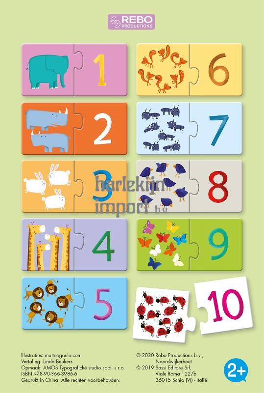 Leer alles over cijfers met hulp van je dierenvriendjes! In deze box met hengsel om overal mee naar toe te nemen vind je een kartonnen boekje en 10 puzzels van 2 stukjes voor de leeftijd vanaf 2 jaar.