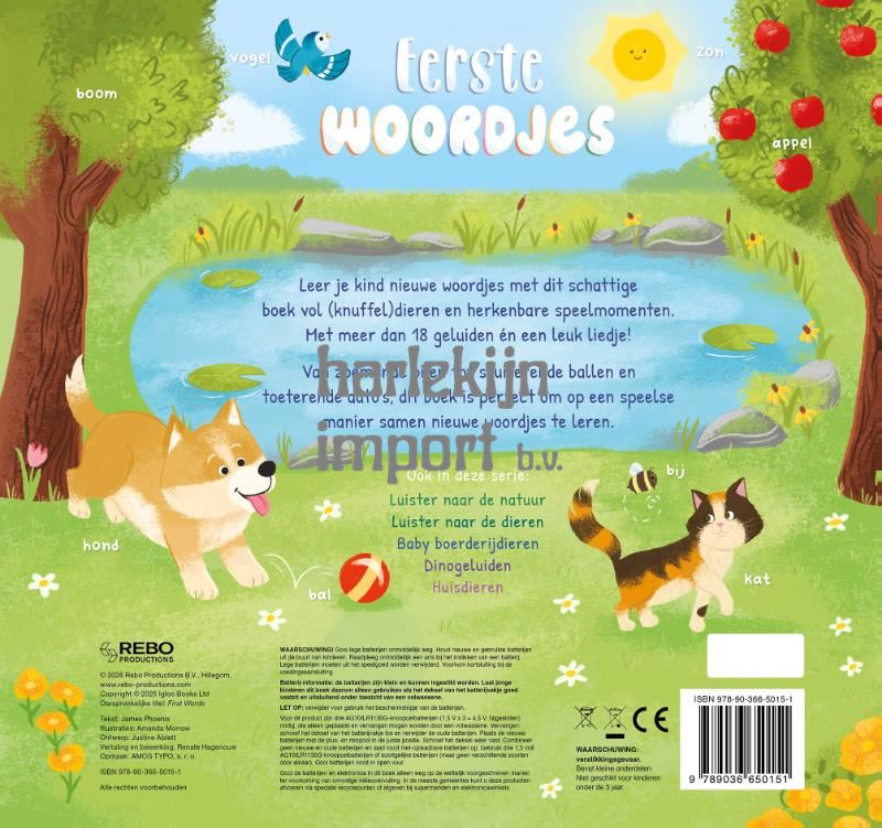 Leer je kind nieuwe woordjes met dit schattige boek vol (knuffel)dieren en herkenbare speelmomenten. Met meer dan 18 geluiden én een leuk liedje! Van zoemende bijen tot stuiterende ballen en toeterende auto's, dit boek is perfect om op een speelse manier samen nieuwe woordjes te leren.
