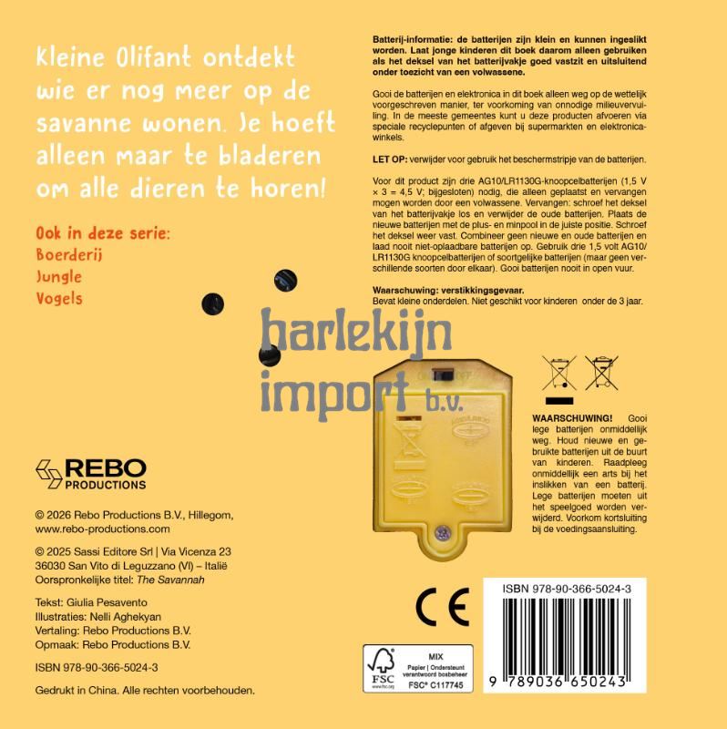 Kleine Olifant ontdekt wie er nog meer op de savanne wonen. Je hoeft alleen maar te bladeren om alle dieren te horen!