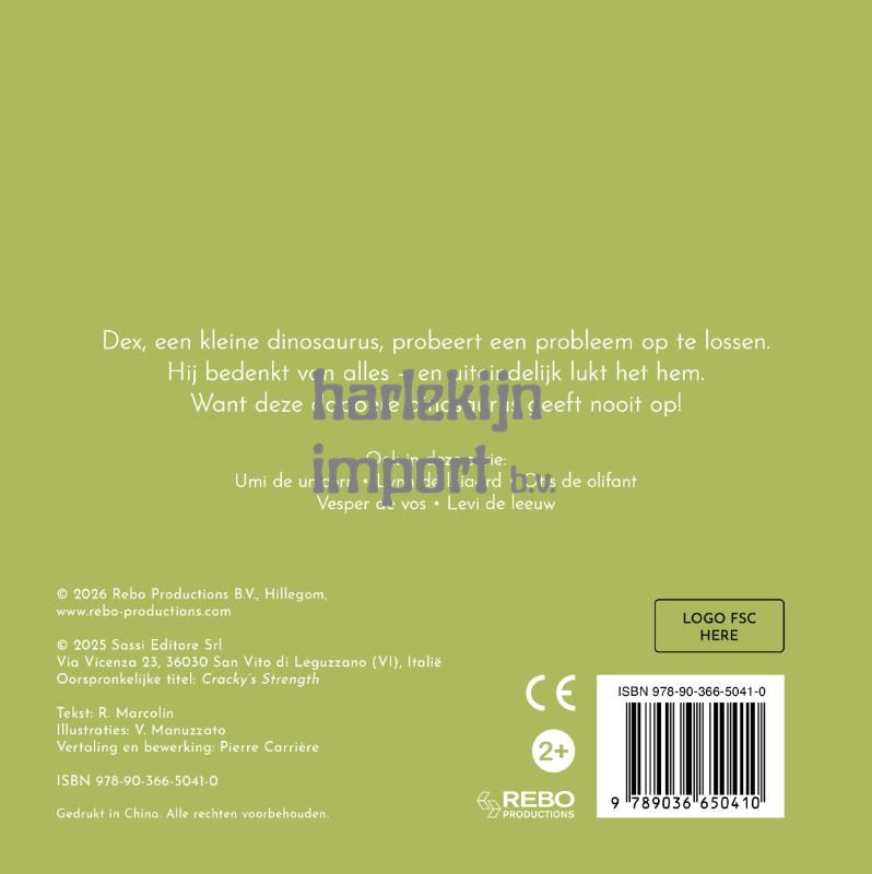 Dex, een kleine dinosaurus, probeert een probleem op te lossen. Hij bedenkt van alles – en uiteindelijk lukt het hem. Want deze dappere dinosaurus geeft nooit op!
