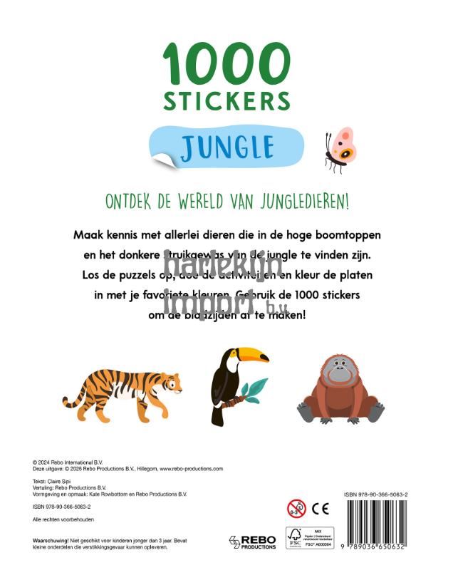Maak kennis met allerlei dieren die in de hoge boomtoppen en het donkere struikgewas van de jungle te vinden zijn. Los de puzzels op, doe de activiteiten en kleur de platen in met je favoriete kleuren. Gebruik de 1000 stickers achterin om de bladzijden af te maken!
