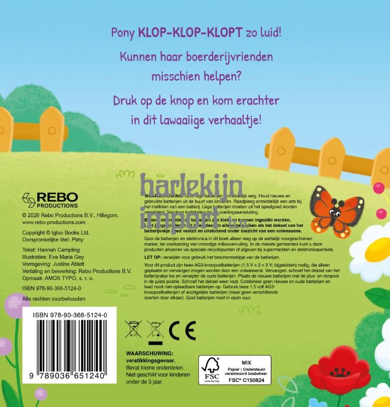 Pony KLOP-KLOP-KLOPT zo luid! Kunnen haar boerderijvrienden misschien helpen? Druk op de knop en kom erachter in dit lawaaiige verhaaltje!