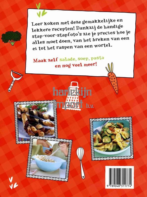 Leer koken met deze gemakkelijke en lekkere recepten! Dankzij de handige stap-voor-stapfoto's zie je precies hoe je alles moet doen, van het breken van een ei tot het raspen van een wortel.Maak zelf salade, soep, pasta en nog veel meer!