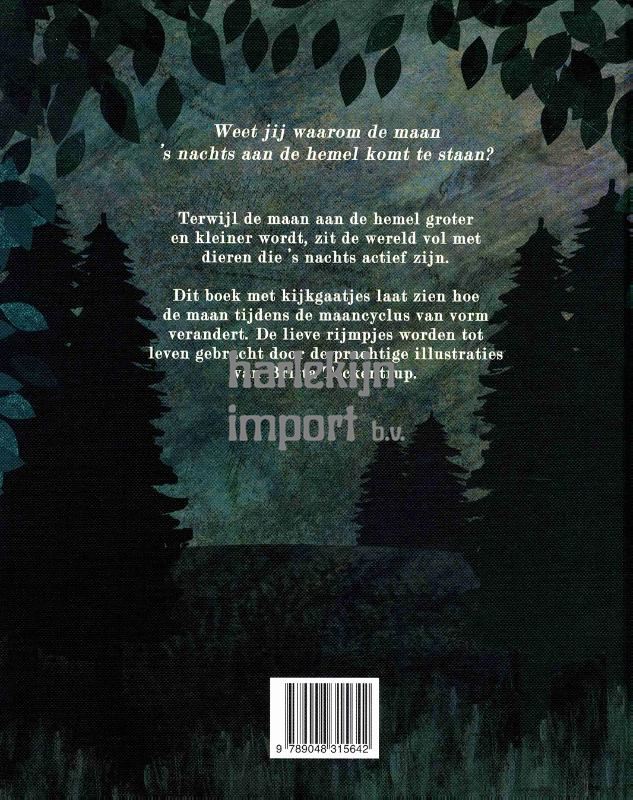 Dit boek met kijkgaatjes laat zien hoe de maan tijdens de maancyclus van vorm verandert.