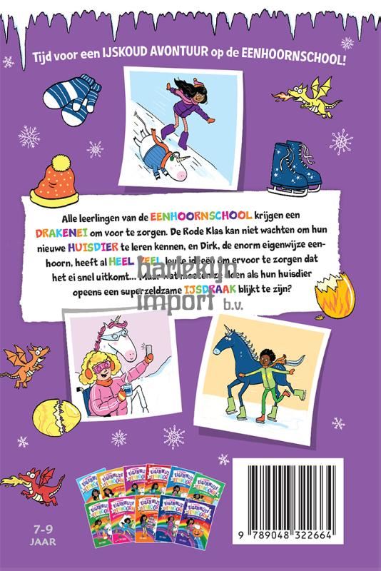Alle leerlingen van de EENHOORNSCHOOL krijgen een DRAKENEI om voor te zorgen. De Rode Klas kan niet wachten om hun nieuwe HUISDIER te leren kennen, en Dirk, de enorm eigenwijze eenhoorn, heeft al HEEL VEEL leuke ideeën om ervoor te zorgen dat het ei snel uitkomt… Maar wat moeten ze doen als hun huisdier opeens een superzeldzame IJSDRAAK blijkt te zijn?