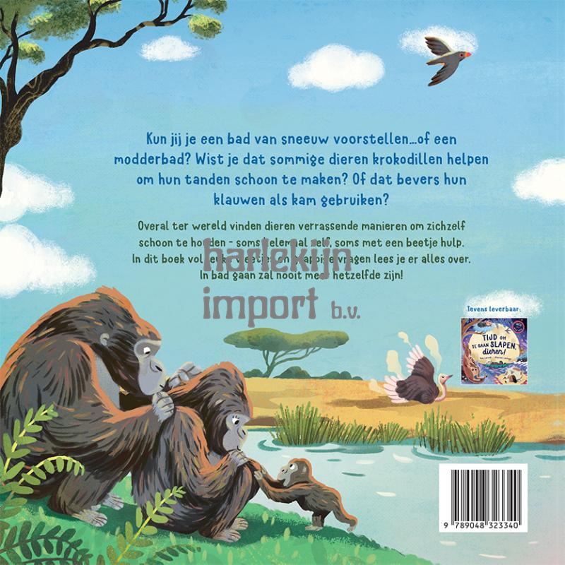 Kun jij je een bad van sneeuw voorstellen…of eenmodderbad? Wist je dat sommige dieren krokodillen helpen om hun tanden schoon te maken? Of dat bevers hun klauwen als kam gebruiken? Overal ter wereld vinden dieren verrassende manieren om zichzelf schoon te houden - soms helemaal zelf, soms met een beetje hulp. In dit boek vol leuke weetjes en grappige vragen lees je er alles over. In bad gaan zal nooit meer hetzelfde zijn!