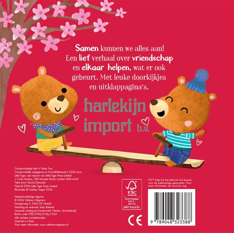 Samen kunnen we alles aan! Een lief verhaal over vriendschap en elkaar helpen, wat er ook gebeurt. Met leuke doorkijkjes en uitklappagina’s.