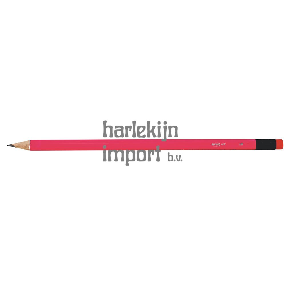 Potloodgrafiet HB neon, driehoek met gum. 2,2 mm grafiet. 12 potloden assorti in doosje.