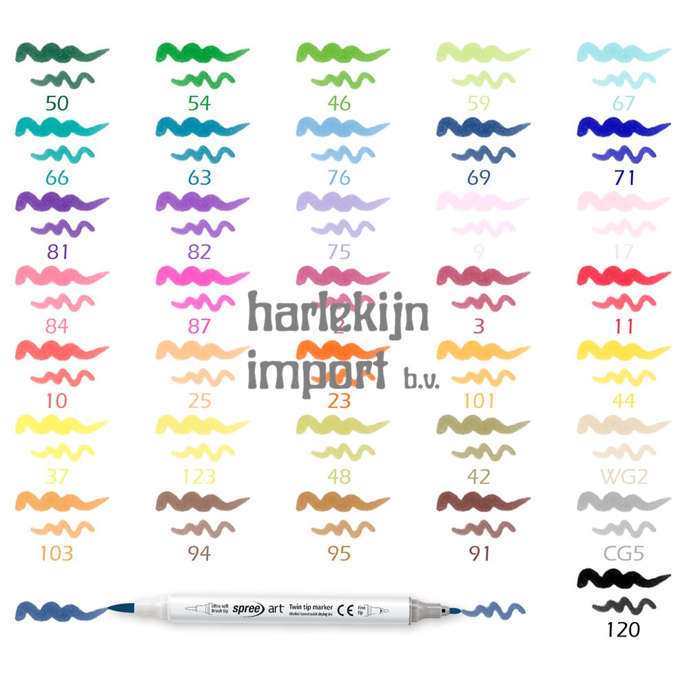 Double-Tops stiften op alcohol gebaseerd. 36 kleuren. |