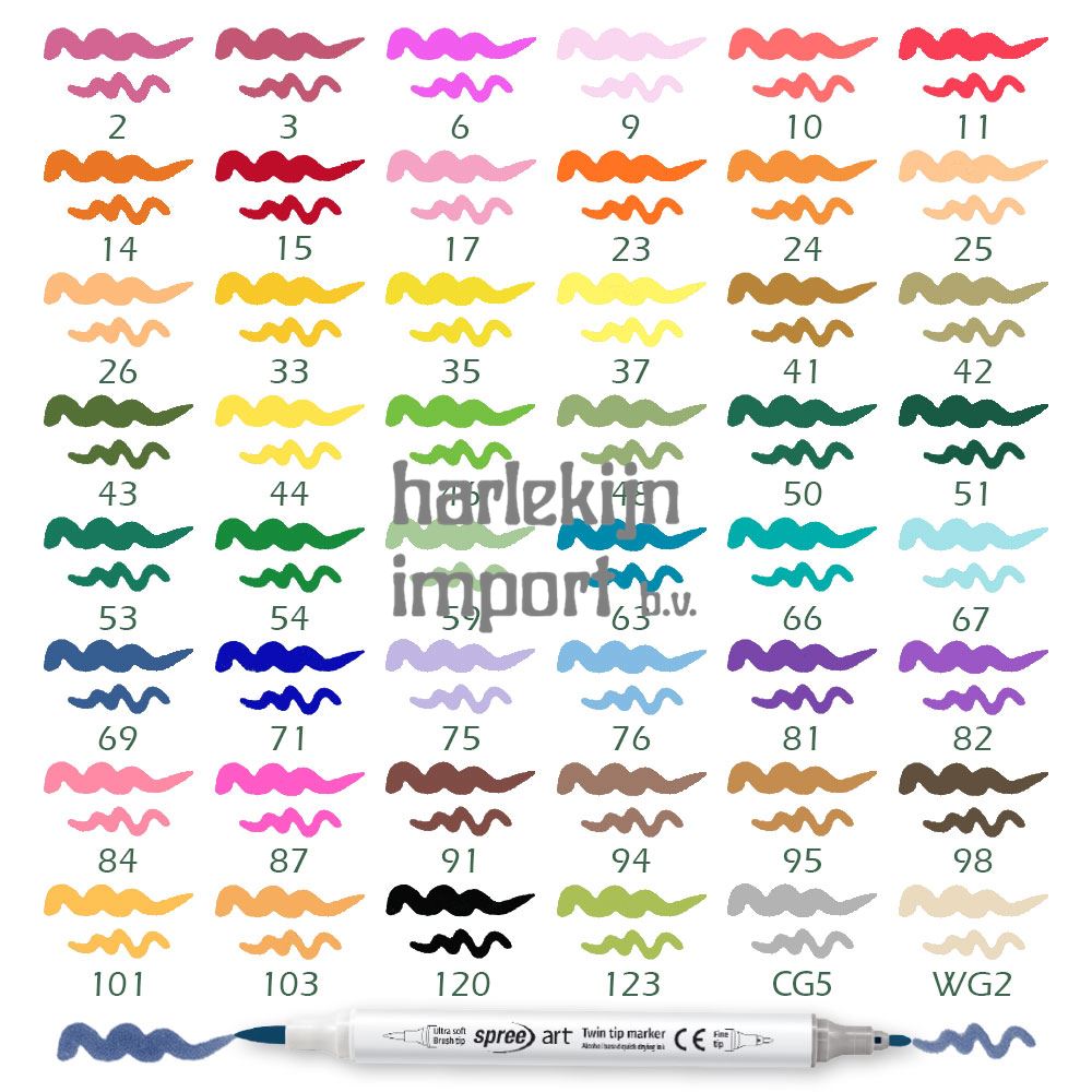 Double-Tops stiften op alcohol gebaseerd. 48 kleuren. |