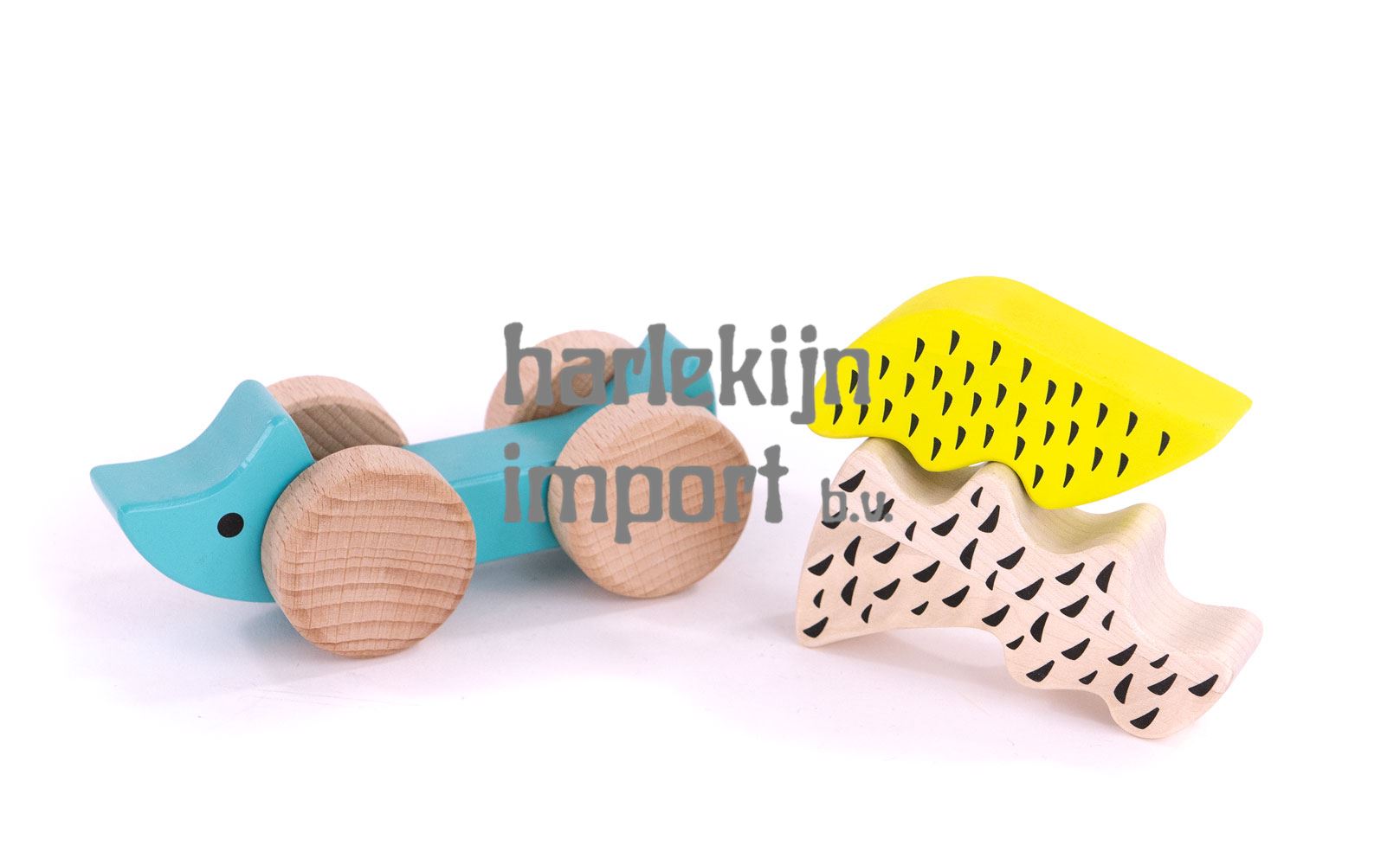 BAJO houten rolfiguur Egel. 14x6x11 cm. 2+