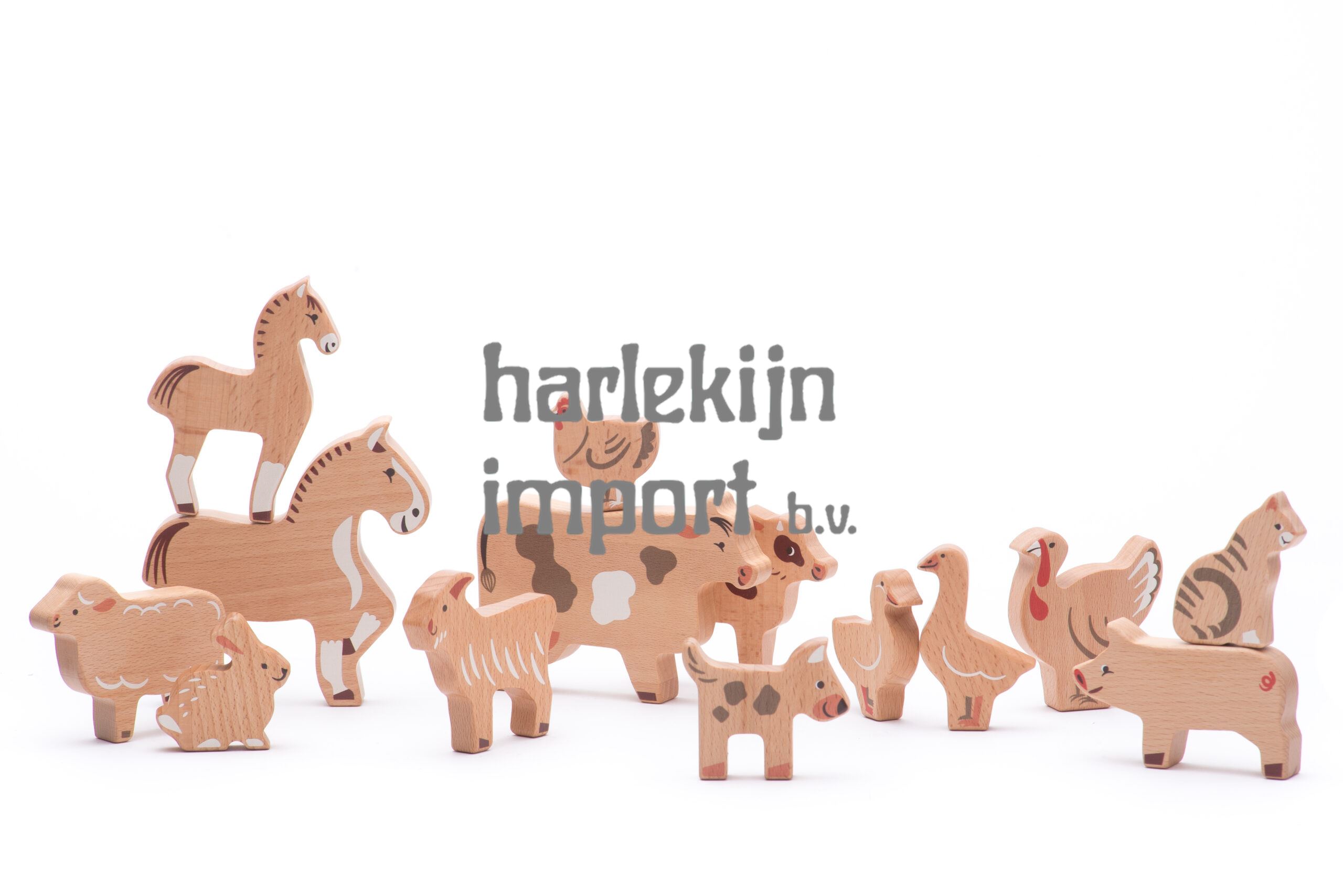 BAJO houtenfiguren De boerderij - 14 assortie. Afmeting grootste dier: 12,3x12x1,8 cm. 2+ |