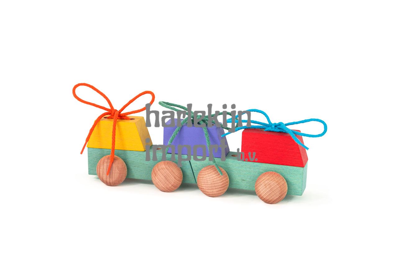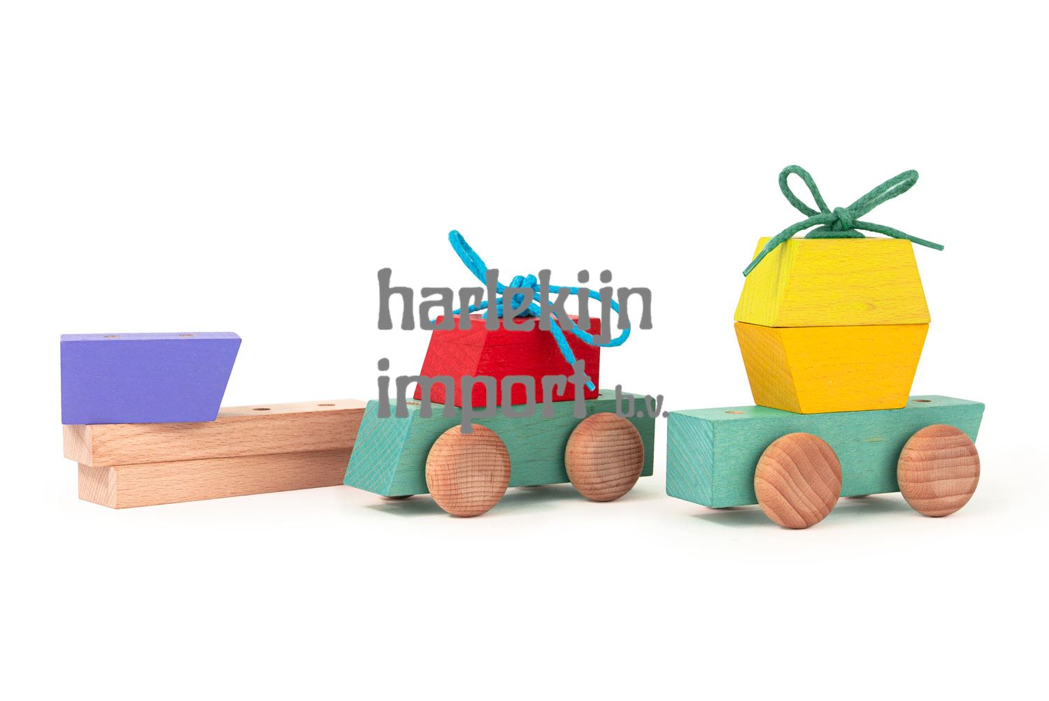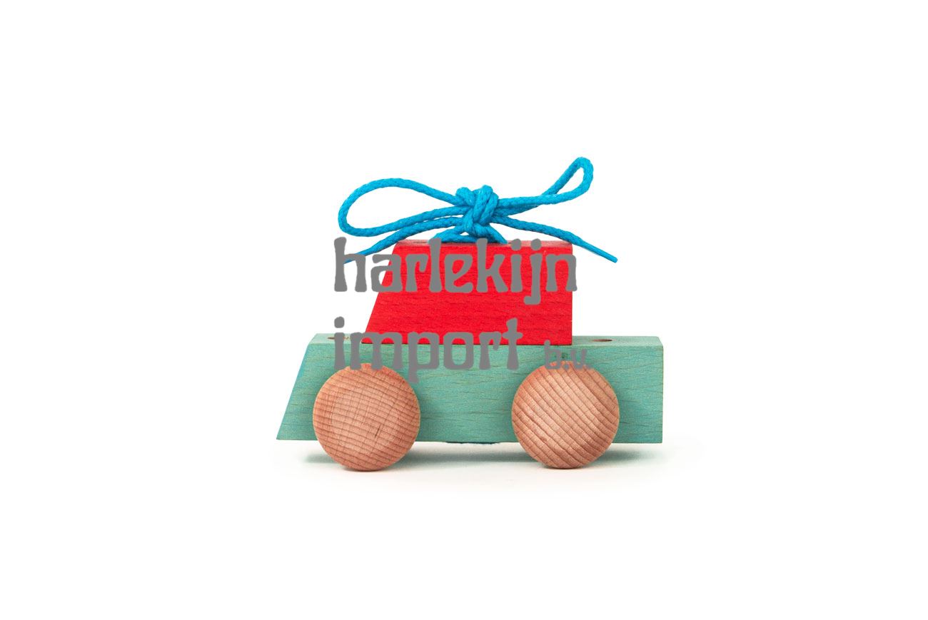 BAJO houten Blokken op wielen. 12x4,5x6 cm. 3+