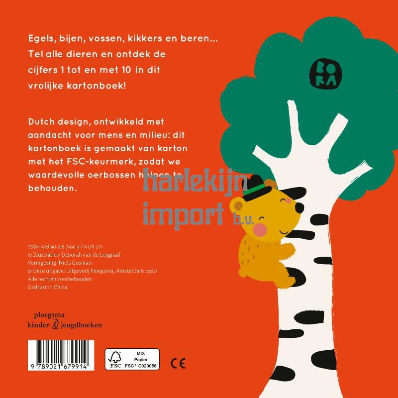 Egels, bijen, vossen, kikkers en beren... Tel alle dieren en ontdek de cijfers 1 tot en met 10 in dit vrolijke kartonboek.