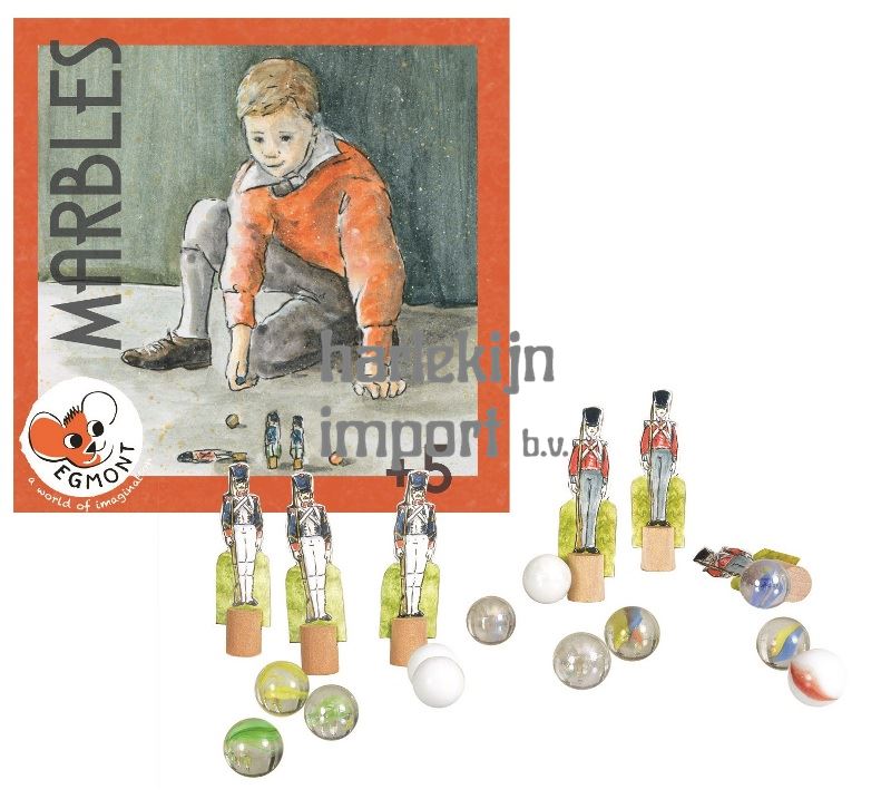 Dit tradtionele knikkerspel bestaat uit 40 knikkers en 6 stijfdeftige soldaten. Mik er op los om ze te doen vallen en tel dan je punten samen met de vriendjes. Uren spelplezier. De nostalgische tekening maat het spel nog zo charmant.