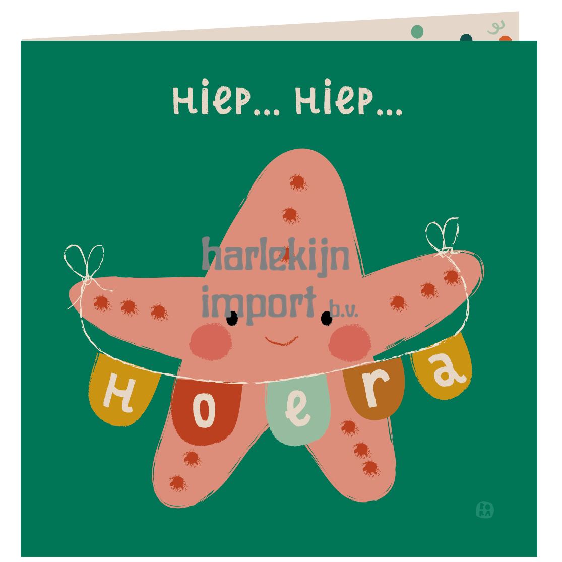 Zee Verjaardagskaart+envelop. Hiep hiep zeester. (5 st.) |