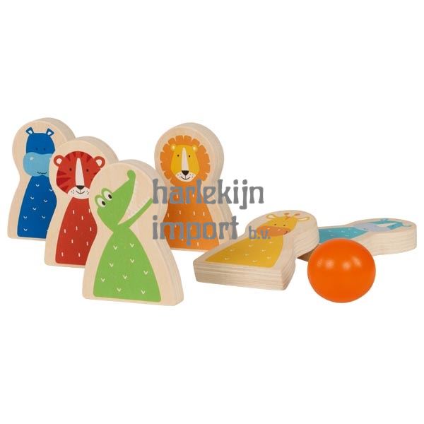 Kegelspel wilde dieren. 9 delig. 8,6 cm. 3+