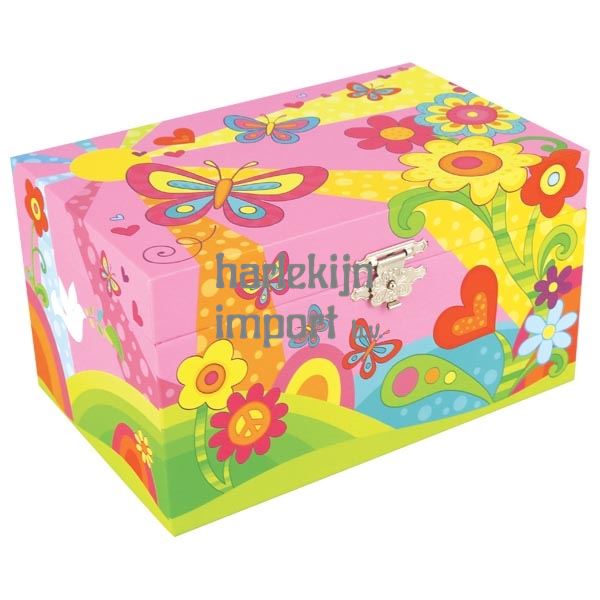 Vanaf nu kun je je schatten bewaren in deze liefdevol ontworpen muziekdoos. Als je hem opent nadat je hem hebt opgewonden, speelt de melodie Over the Rainbow en begint de schattige vlinder zich voor de spiegel om te draaien. Met de illustratie op je sieradendoosje willen we je eraan herinneren hoe mooi en kleurrijk onze wereld is. Houd je heldere, onbewolkte blik op het leven en bescherm al je schatten, groot en klein.