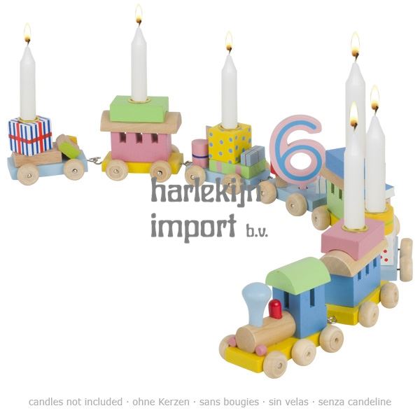 Verjaardagstrein, locomotief en 7 aanhangwagens. 12 delig. 57 cm. (zonder kaarsjes) |