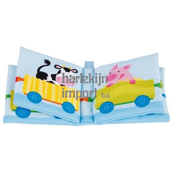 Voor jonge lezers: stoffen prentenboek met pieper en krakende folie.