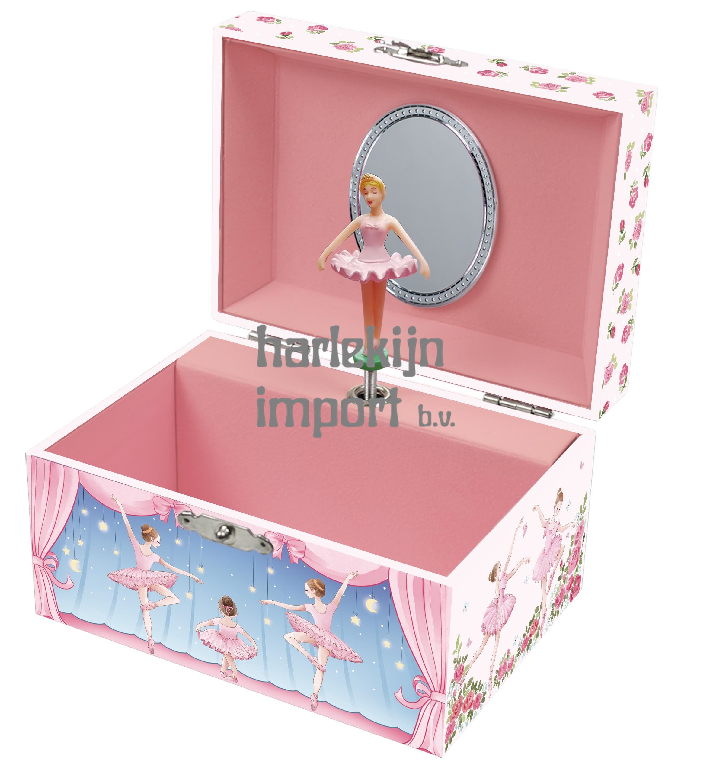 Juwelendoos - muziekdoos: Ballerina met rozen. Figuur in doosje: Ballerina roze. Melodie: Twinkle Twinkle. 3+ |