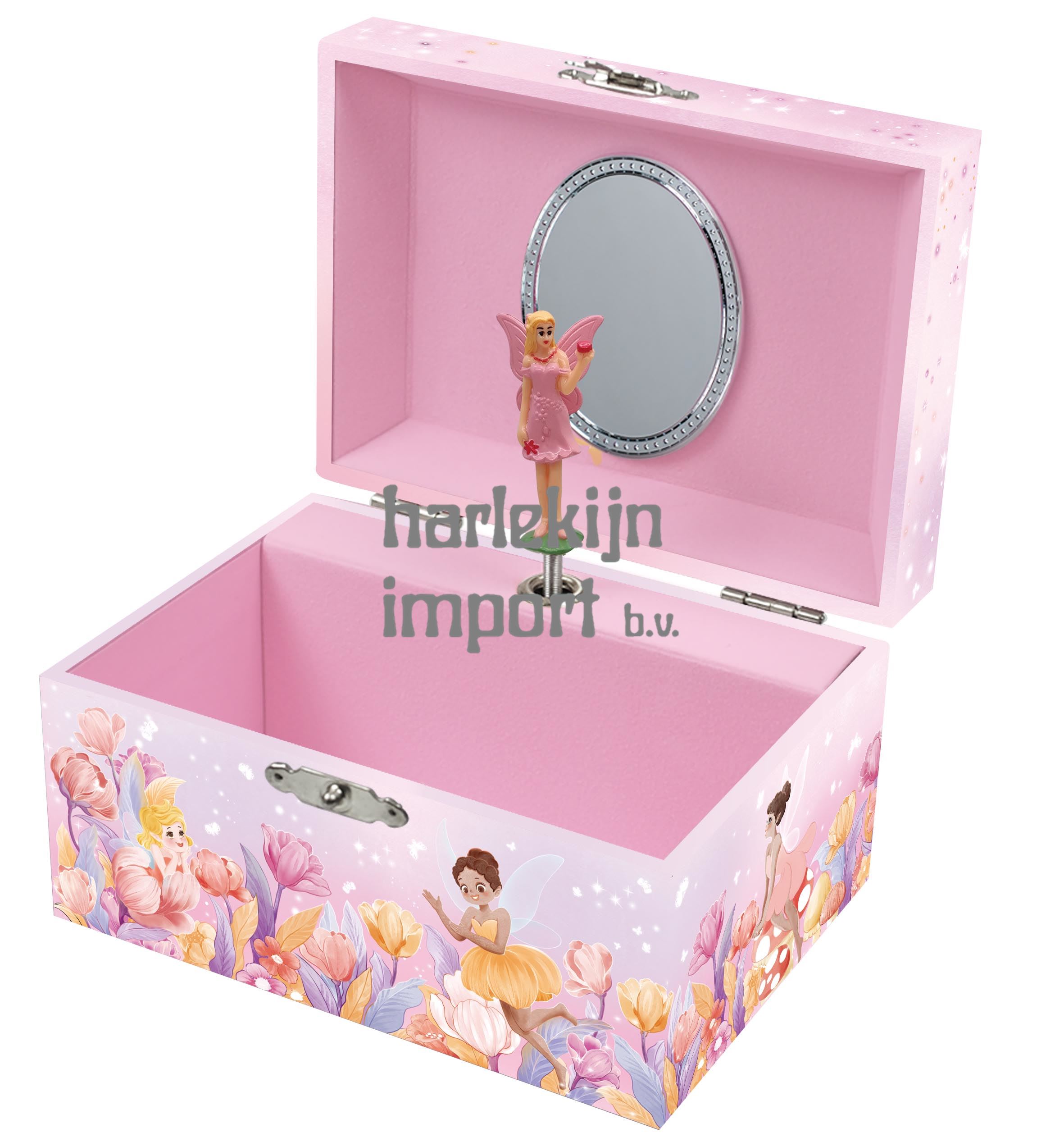 In het juwelendoosje met muziek draait als figuurtje een roze Elfje!