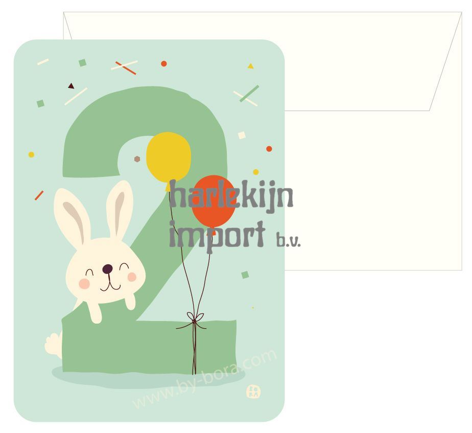 Bora Verjaardagskaart+envelop Bunny 2 (5 st.) |