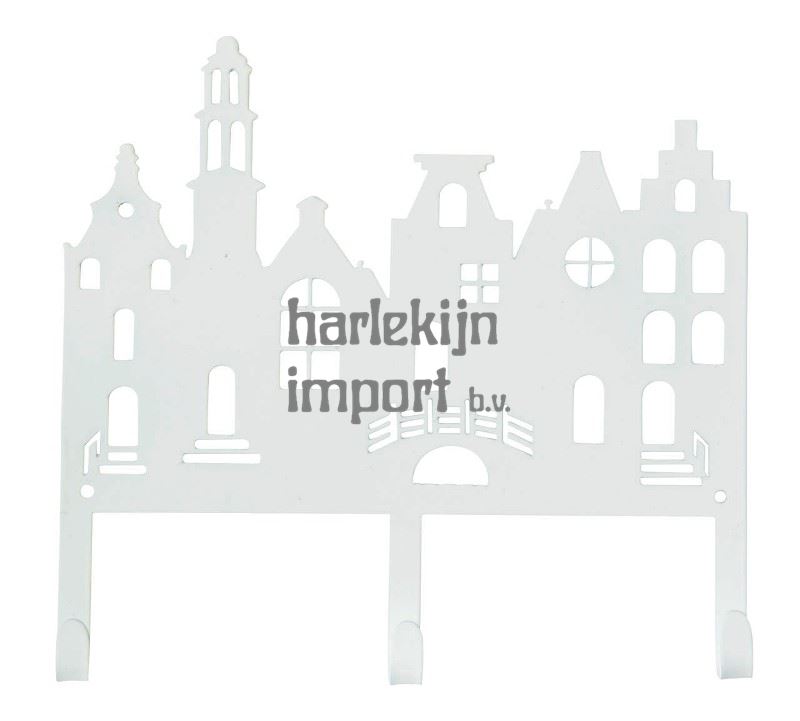Kapstok metaal grachtenpanden wit. 3+