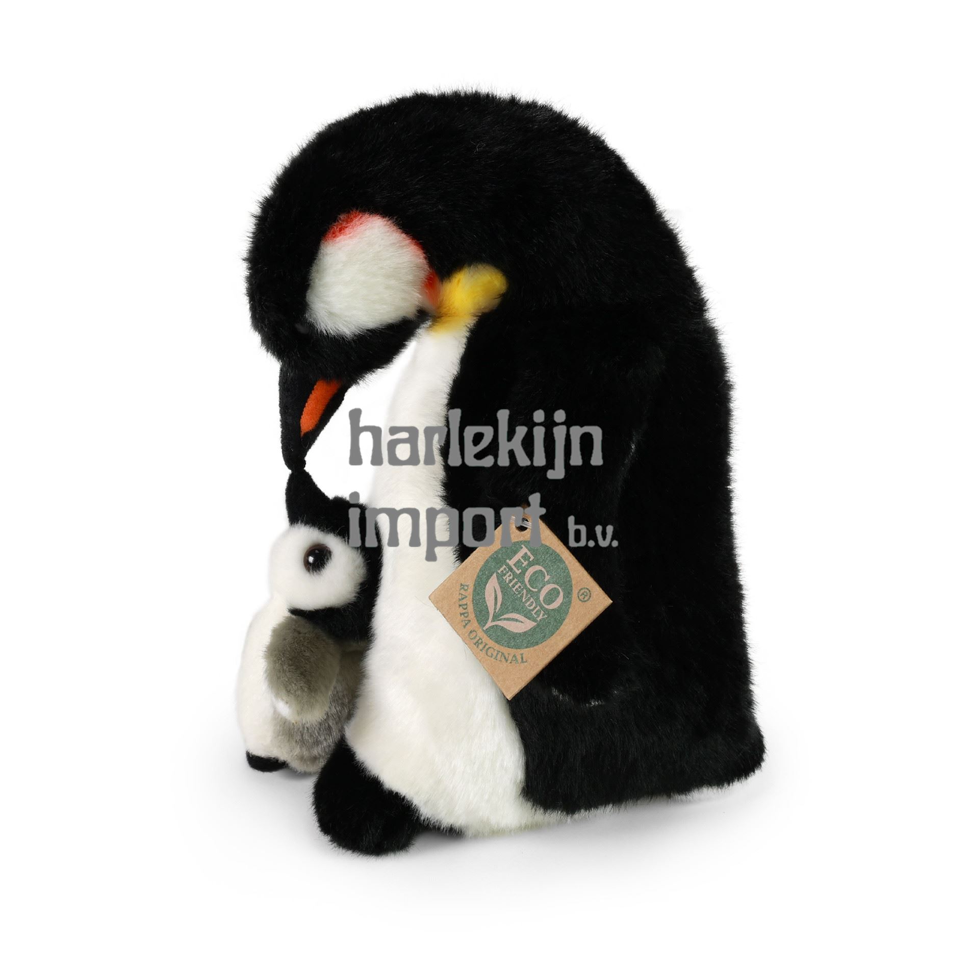 Een prachtige pluche pinguïn van 22 cm met een jong. De pinguïn is gemaakt van hoogwaardige pluche en maakt deel uit van de exclusieve collectie van RAPPA-pluche speelgoed. Wat betekent ECO-VRIENDELIJK eigenlijk? De vulling van het pluche speelgoed is gemaakt van gerecyclede PET-flessen. Dit materiaal is volledig veilig, niet te onderscheiden van de standaard vulling en volledig gecertificeerd voor de veiligheid van baby's. We hebben besloten de groene weg in te slaan, zo milieuvriendelijk mogelijk ? de ECO-VRIENDELIJKE weg.