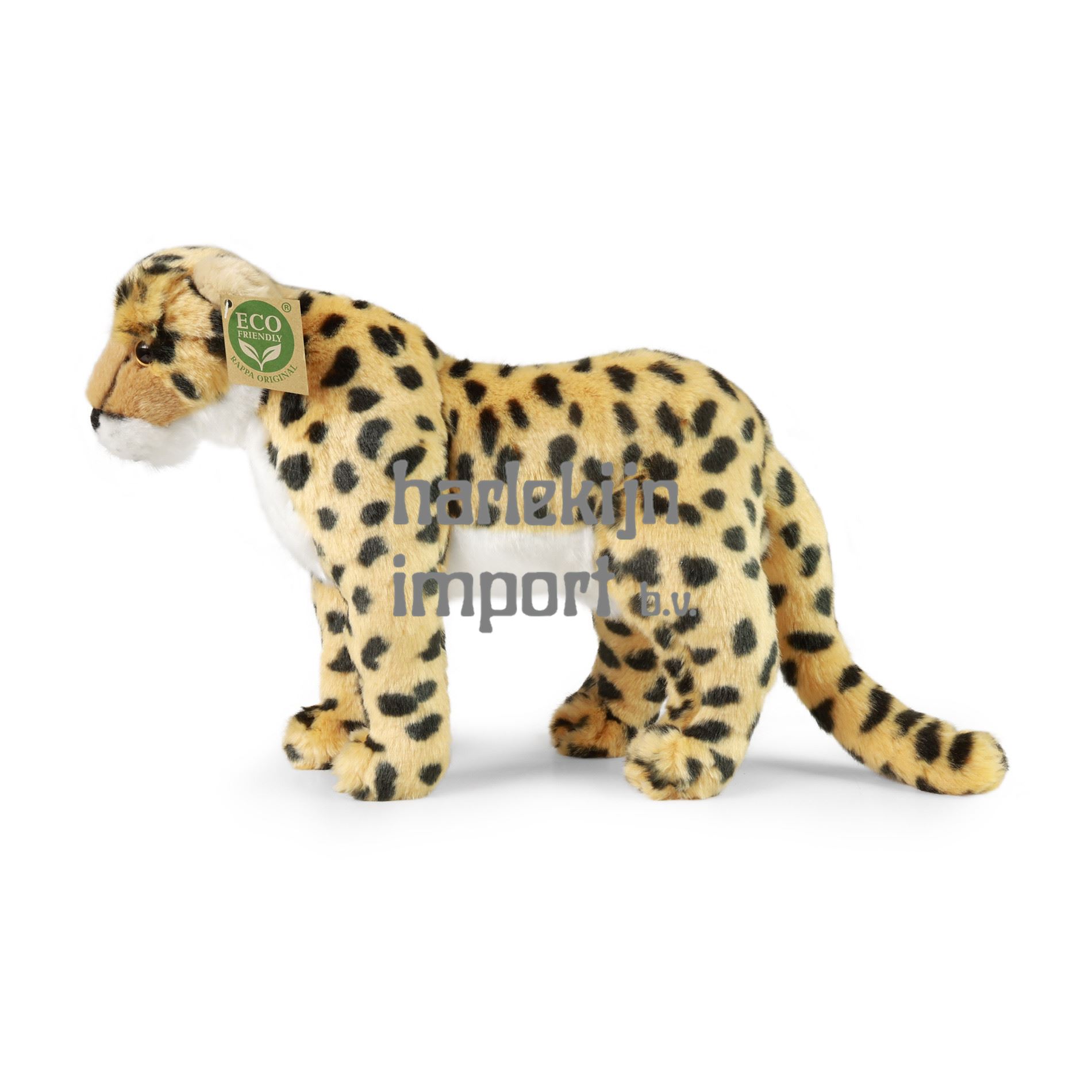 Prachtige pluche cheeta van 30 cm. Het is gemaakt van hoogwaardige pluche en maakt deel uit van de exclusieve collectie van RAPPA-pluche speelgoed. Wat betekent ECO-VRIENDELIJK eigenlijk? De vulling van het pluche speelgoed is gemaakt van gerecyclede PET-flessen. Dit materiaal is volledig veilig, niet te onderscheiden van de standaard vulling en volledig gecertificeerd voor de veiligheid van baby's. We hebben besloten de groene weg in te slaan, zo milieuvriendelijk mogelijk ? de ECO-VRIENDELIJKE weg.