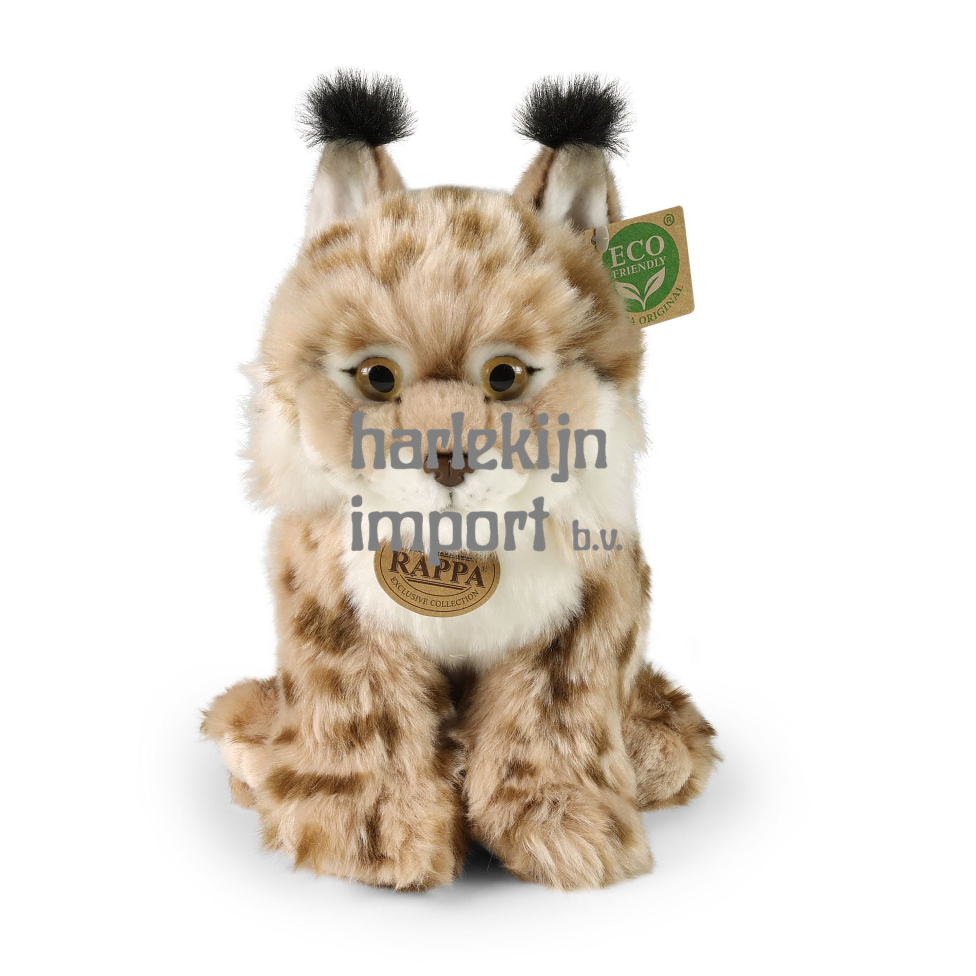 Een prachtige pluche lynx mag niet ontbreken in je dierencollectie! De lynx van 27 cm is gemaakt van exclusieve, hoogwaardige pluche en maakt deel uit van de exclusieve collectie van RAPPA pluche speelgoed. Dit sensationele pluche exemplaar is ideaal als cadeau! Wat betekent ECO-VRIENDELIJK eigenlijk? De vulling van het pluche speelgoed is gemaakt van gerecyclede PET-flessen. Dit materiaal is volledig veilig, niet te onderscheiden van de standaard vulling en volledig gecertificeerd voor de veiligheid van baby's. We hebben besloten de groene weg in te slaan, zo milieuvriendelijk mogelijk ? de ECO-VRIENDELIJKE weg.