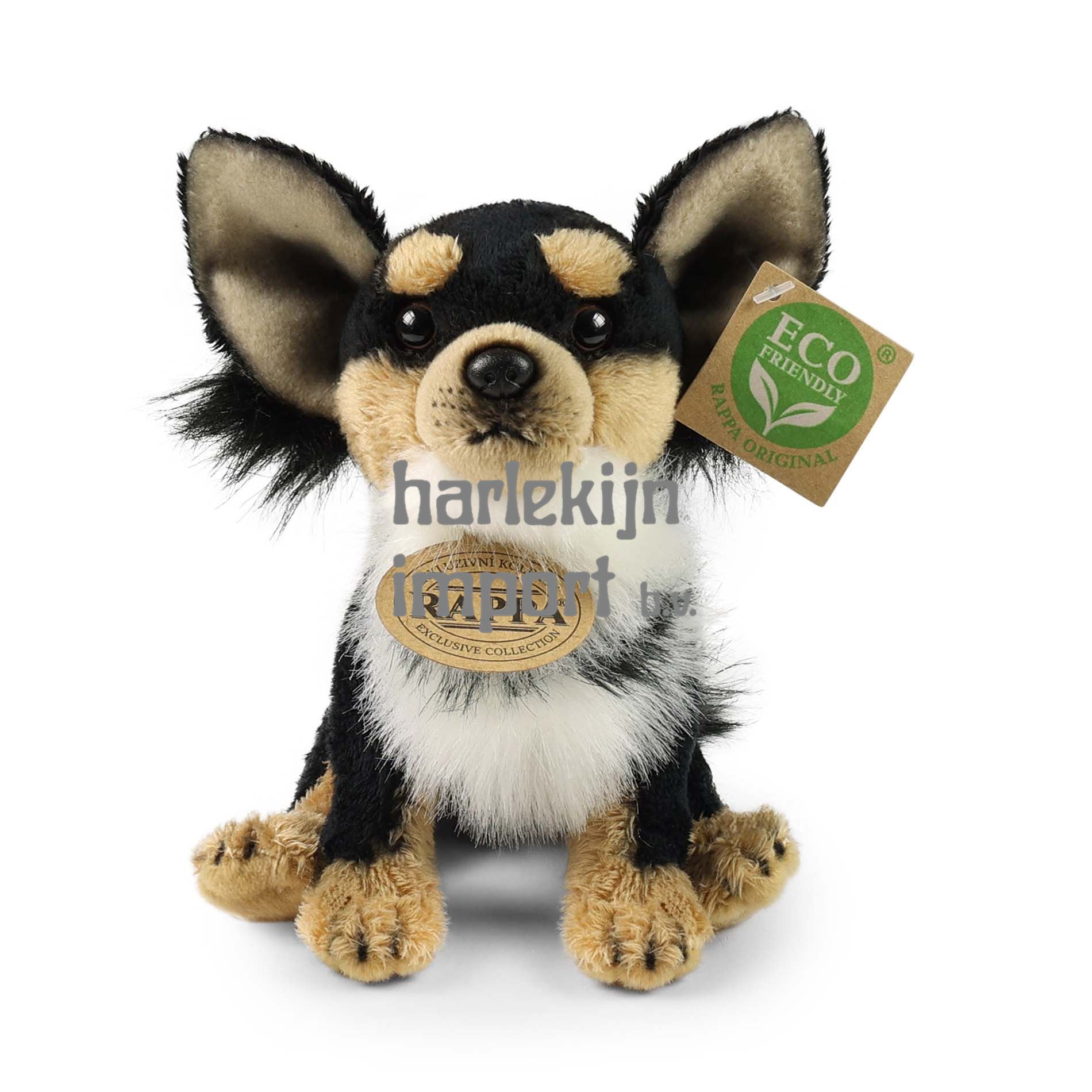 De 15 cm pluche chihuahua is gemaakt van hoogwaardig, donzig pluche en maakt daarmee deel uit van de exclusieve collectie knuffels RAPPA. Het perfecte cadeau voor elke gelegenheid! Wat betekent ECO-FRIENDLY eigenlijk? De vulling van de knuffel is gemaakt van gerecyclede PET-flessen. Dit materiaal is volkomen veilig, niet te onderscheiden van de standaard vulling en volledig gecertificeerd voor de veiligheid van zelfs de allerkleinsten. We hebben besloten om de groene weg te gaan, zo milieuvriendelijk mogelijk - de ECO-VRIENDELIJKE manier.