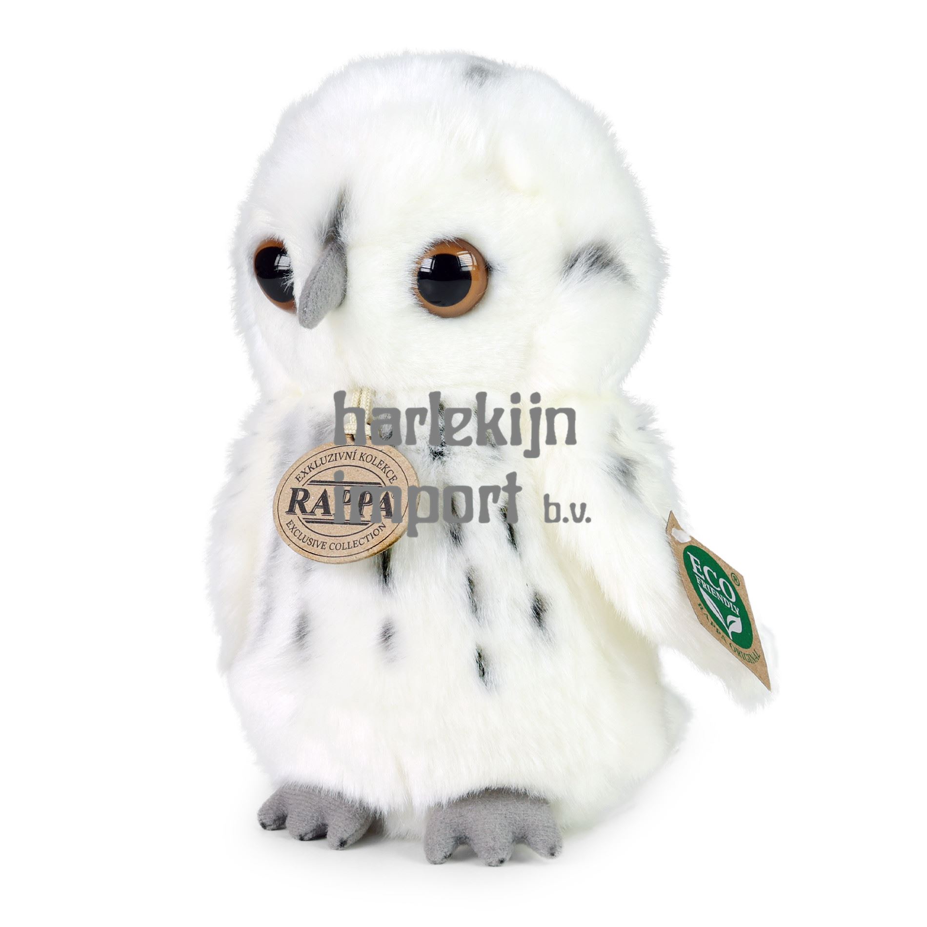 De 18 cm pluche witte uil is handgevoerd van hoogwaardige, zachte pluche, waardoor hij levensecht lijkt. Het maakt deel uit van de exclusieve collectie van RAPPA-pluche speelgoed. We hebben besloten de groene weg in te slaan, zo milieuvriendelijk mogelijk ? de ECO-VRIENDELIJKE weg. Wat betekent ECO-VRIENDELIJK eigenlijk? De vulling van het pluche speelgoed is gemaakt van gerecyclede PET-flessen. Dit materiaal is volledig veilig, niet te onderscheiden van de standaard vulling en volledig gecertificeerd voor de veiligheid van zelfs de kleinste kinderen.