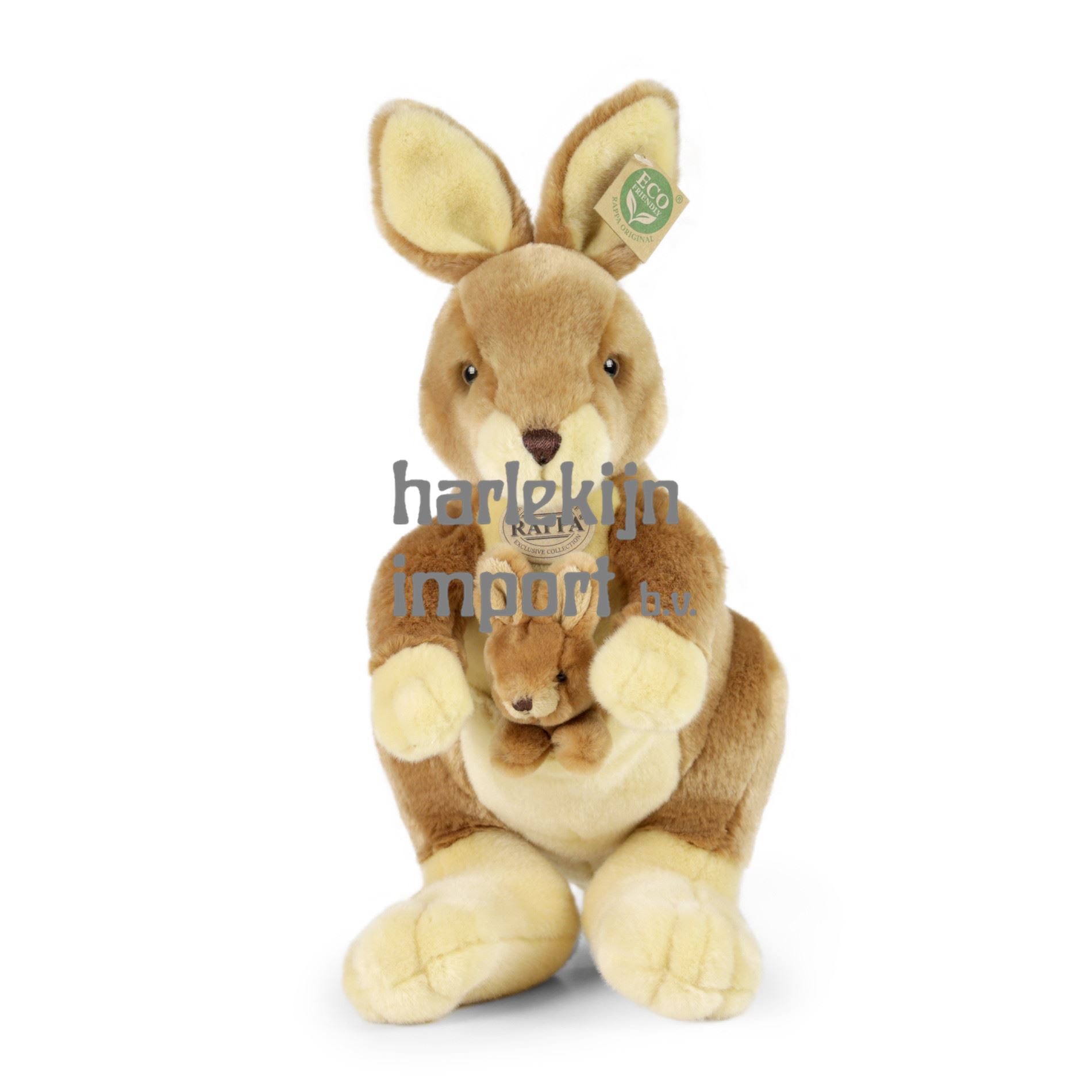 Pluche kangoeroe met baby, 37 cm, milieu Rappa
