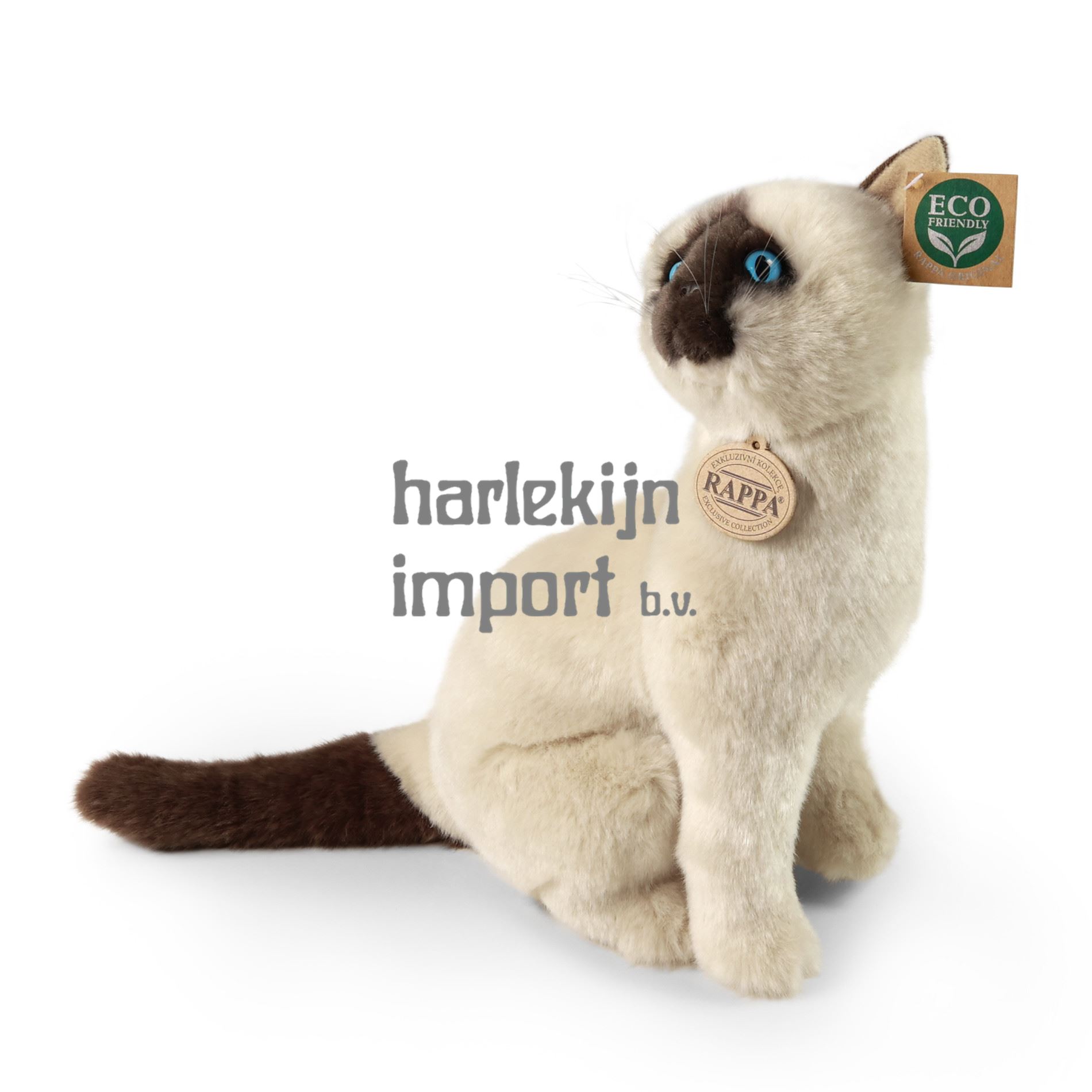 De pluche Siamese kat van 30 cm is met de hand genaaid van hoogwaardig, zacht pluche, waardoor hij er levensecht uitziet. Het maakt deel uit van de exclusieve collectie RAPPA knuffels. Deze knuffel is een ideaal cadeau voor alle liefhebbers van schattige knuffels! We hebben besloten om de groene weg te gaan met de minste belasting van het milieu - de MILIEUVRIENDELIJKE manier. Wat betekent ECO-FRIENDLY eigenlijk? De vulling van de knuffel is gemaakt van gerecyclede PET-flessen. Dit materiaal is volkomen veilig, voelt niet aan van standaardvulling en is volledig gecertificeerd voor de veiligheid van zelfs de allerkleinsten.