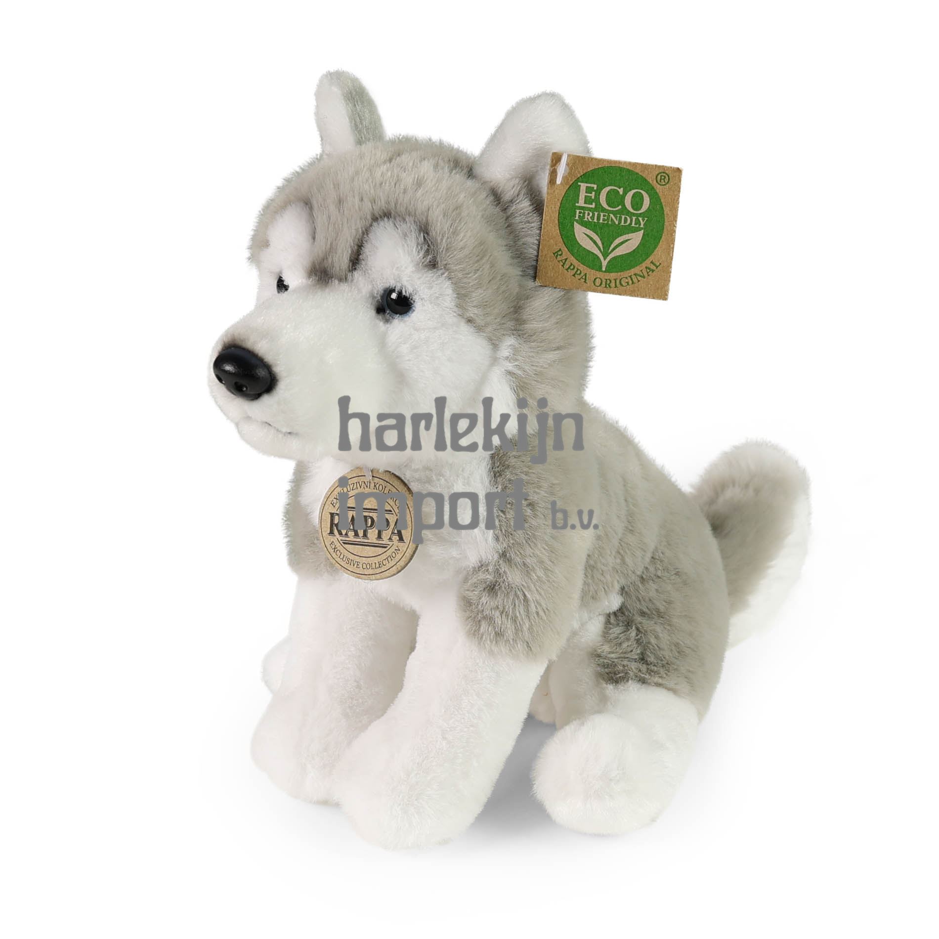 SOFT COLLECTION is een nieuwe collectie knuffels gemaakt van een nieuw, nog zachter materiaal. Pluche husky hond ?? meet 23 cm en maakt dankzij de materialen van de hoogste kwaliteit deel uit van de Rappa Exclusive Collection van knuffels. Dankzij het handgemaakte karakter van elk stuk ziet het er levensecht uit. Waarom het ECO-FRIENDLY label? Rappa is zich bewust van alle milieueffecten, richt zich op duurzaamheid en het minimaliseren van het gebruik van plastic. Daarom is de speelgoedvulling gemaakt van gerecyclede materialen, met name PET-flessen. Het is echter volkomen onschadelijk en geschikt voor kinderen vanaf de geboorte. LEUK WEETJE: Wist je dat sommige husky's zelfs het ene blauwe oog hebben en het andere bruin?