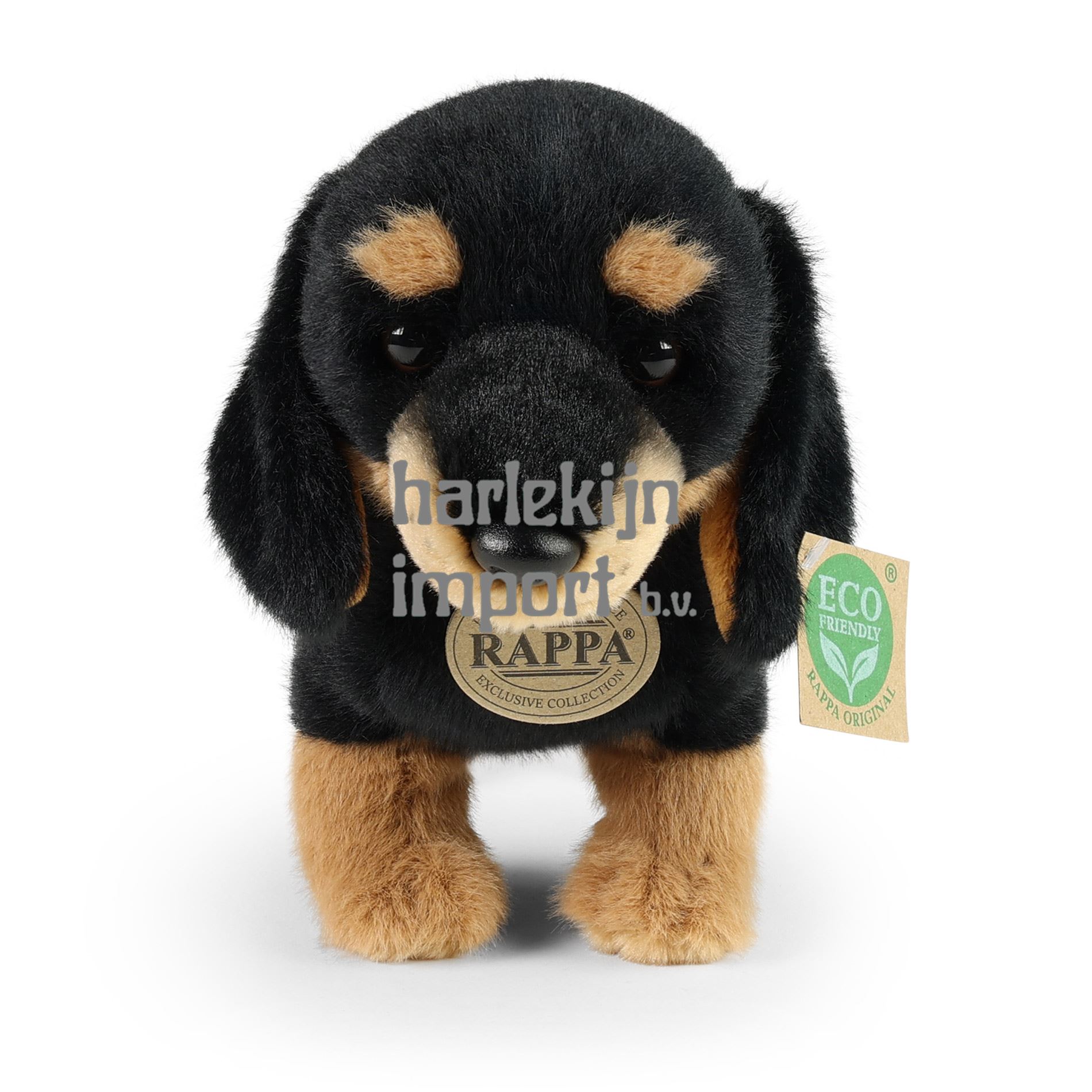 SOFT COLLECTION is een nieuwe collectie knuffels gemaakt van een nieuw, nog zachter materiaal. Pluche teckelhond meet 23 cm en maakt dankzij de materialen van de hoogste kwaliteit deel uit van de Exclusive Collection pluche speelgoed van het merk Rappa. Dankzij het handgemaakte karakter van elk stuk ziet het er ook levensecht uit. Waarom het ECO-FRIENDLY label? Rappa is zich bewust van alle milieueffecten, richt zich op duurzaamheid en het minimaliseren van het gebruik van plastic. Daarom is de speelgoedvulling gemaakt van gerecyclede materialen, met name PET-flessen. Het is echter volkomen onschadelijk en geschikt voor kinderen vanaf de geboorte. LEUK WEETJE: Wist je dat teckels een gevoelige ruggengraat hebben en daarom niet veel mogen springen of trappen op mogen lopen?