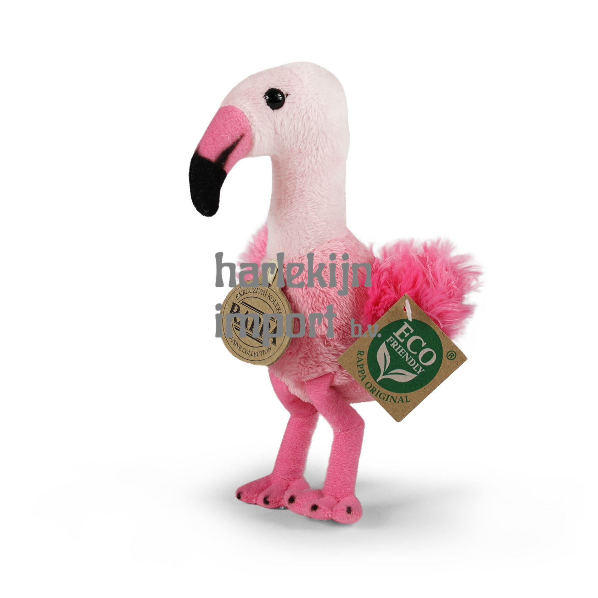 De pluche flamingo meet 15 cm en dankzij de materialen van de hoogste kwaliteit behoort hij tot de Exclusieve Collectie knuffels van het merk Rappa. Dankzij de handgemaakte bewerking van elk stuk ziet het er ook levendig uit. Waarom het label ECO-FRIENDLY? Rappa is zich bewust van alle milieueffecten, richt zich op duurzaamheid en het minimaliseren van het gebruik van plastic. Daarom is de speelgoedvulling gemaakt van gerecyclede materialen, vooral PET-flessen. Het is echter volledig onschadelijk en vanaf de geboorte geschikt voor kinderen. LEUK WEETJE: Wist je dat flamingo's wit of grijs worden geboren en geleidelijk die prachtige roze kleur van voedsel krijgen?