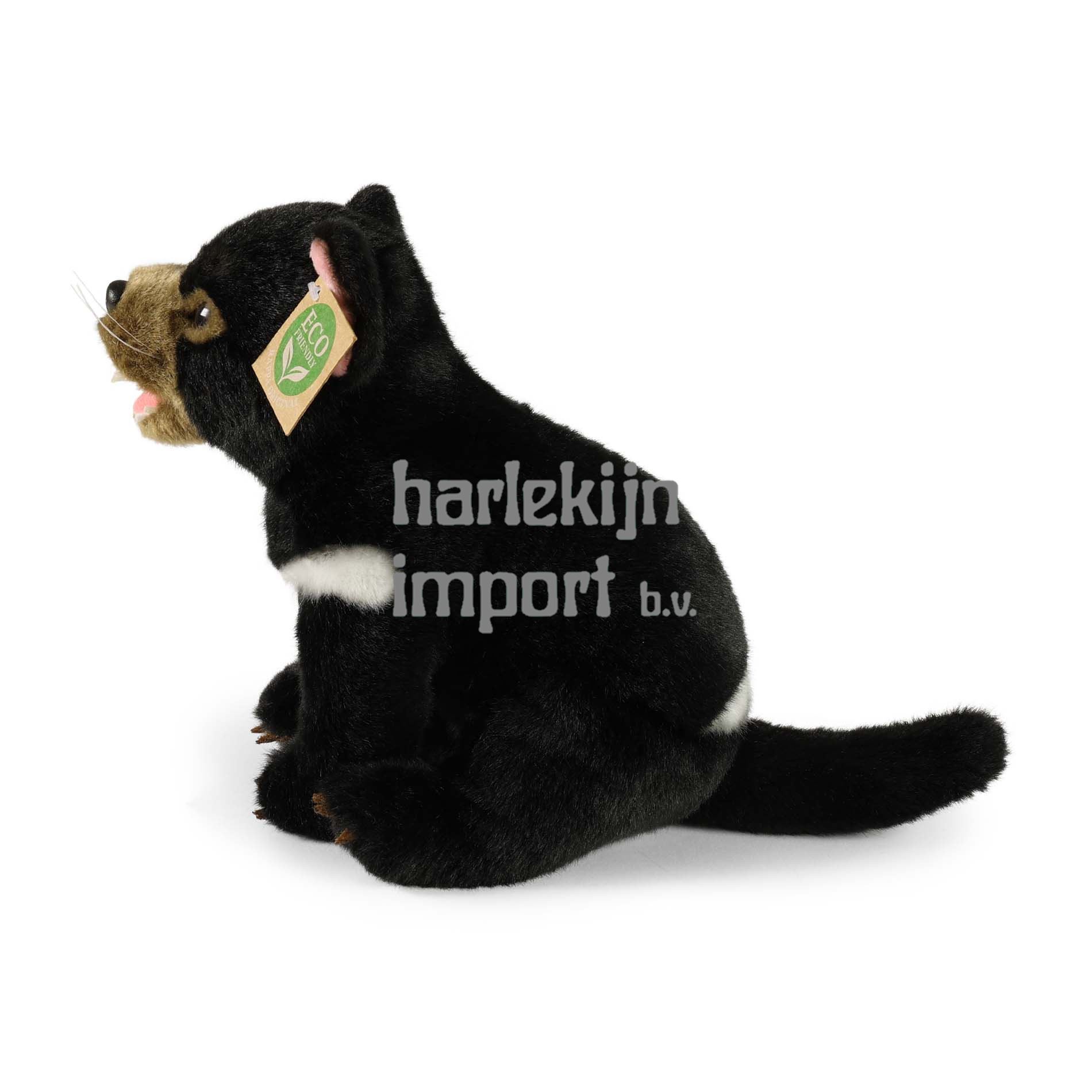 De Plush Tasmanian Devil meet 25 cm en maakt dankzij de hoogste kwaliteit materialen deel uit van de Rappa Exclusive Collection van knuffels. Dankzij het handgemaakte karakter van elk stuk ziet het er levensecht uit. Waarom het label ECO-FRIENDLY? Rappa is zich bewust van alle milieueffecten en richt zich op duurzaamheid en het minimaliseren van het gebruik van plastic. Daarom is de speelgoedvulling gemaakt van gerecyclede materialen, vooral PET-flessen. Het is echter volledig onschadelijk en vanaf de geboorte geschikt voor kinderen. LEUK WEETJE: Wist je dat de Tasmanische duivel het grootste levende vleesetende buideldier ter wereld is en botten kan verpletteren met zijn ongelooflijk sterke beet?