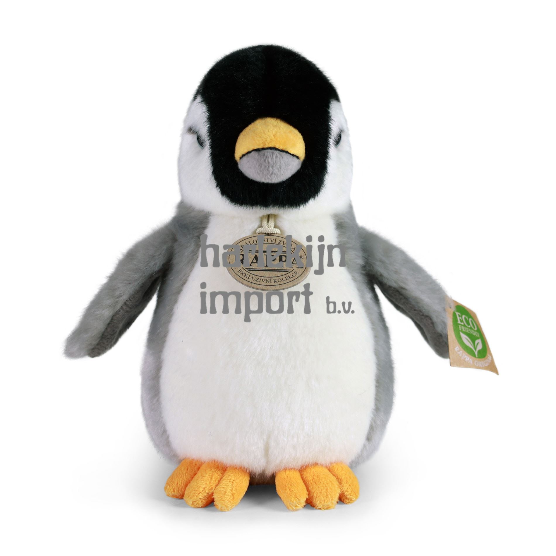 Prachtige pluche pinguïn van 20 cm. De pinguïn is gemaakt van hoogwaardige pluche en maakt dus deel uit van de exclusieve collectie van pluche speelgoed RAPPA. Wat betekent ECO-VRIENDELIJK eigenlijk? De vulling van het pluche speelgoed is gemaakt van gerecyclede PET-flessen. Dit materiaal is volledig veilig, niet te onderscheiden van de standaard vulling en volledig gecertificeerd voor de veiligheid van zelfs de kleinste kinderen. We hebben besloten om de groene weg in te slaan, zo milieuvriendelijk mogelijk ? de ECO-VRIENDELIJKE weg.