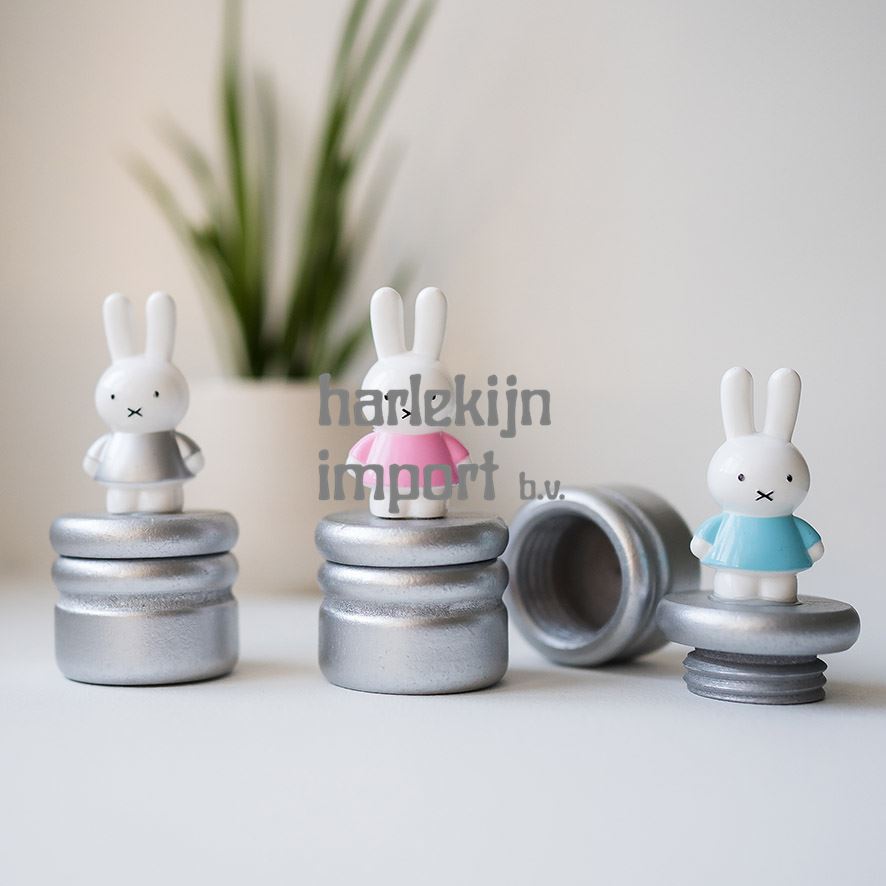 Die bewaart ze in een mooi houten tandendoosje met nijntjefiguur bovenop.