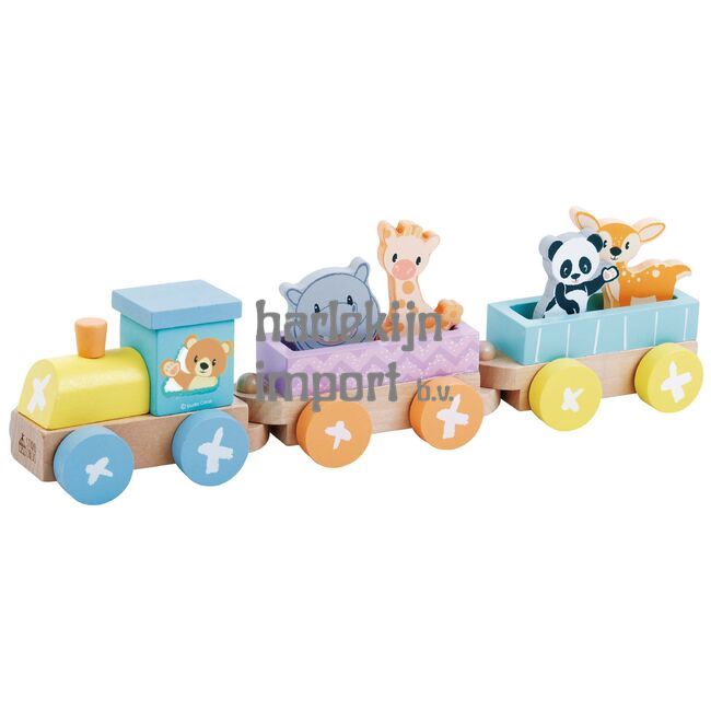 Een vrolijke dierentrein in pasteltinten van Studio Circus.